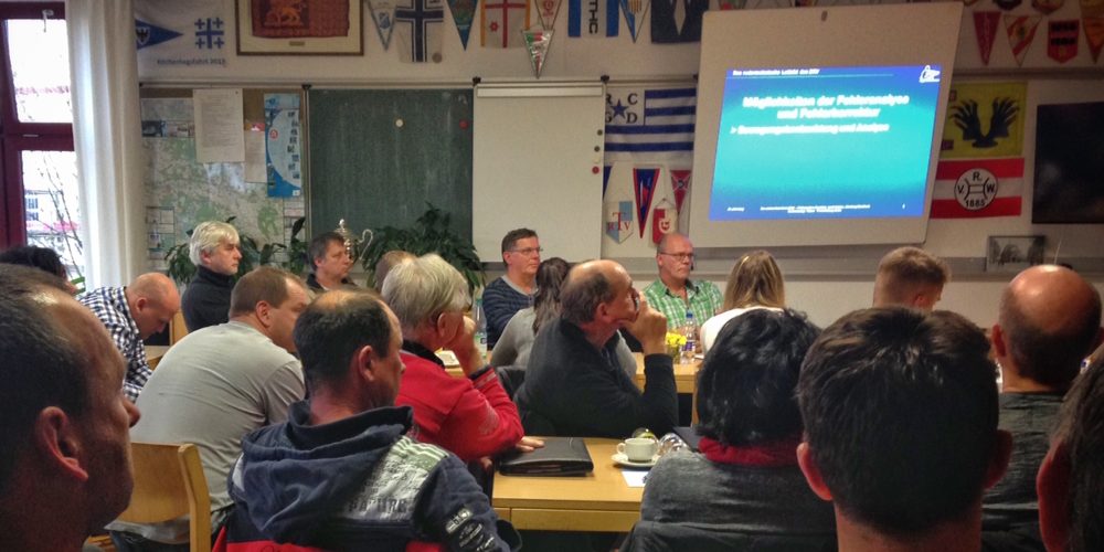 Am Nachmittag referierte Dr. Altenburg, ehemaliger Bundestrainer, über das rudertechnische Leitbild für Skullen sowie für Riemenrudern. Um seine theoretischen Punkte zu unterstützen, hatte er Fotos und Videos mitgebracht, an denen mithilfe von realen Beispielen die unterschiedlichen Phasen der Ruderbewegung erklärt wurden. Hierbei wurde insbesondere auf häufige Fehler eingegangen. Den Abschluss seines Vortrages bildete ein Ausflug in die Thematik des Krafttrainings.